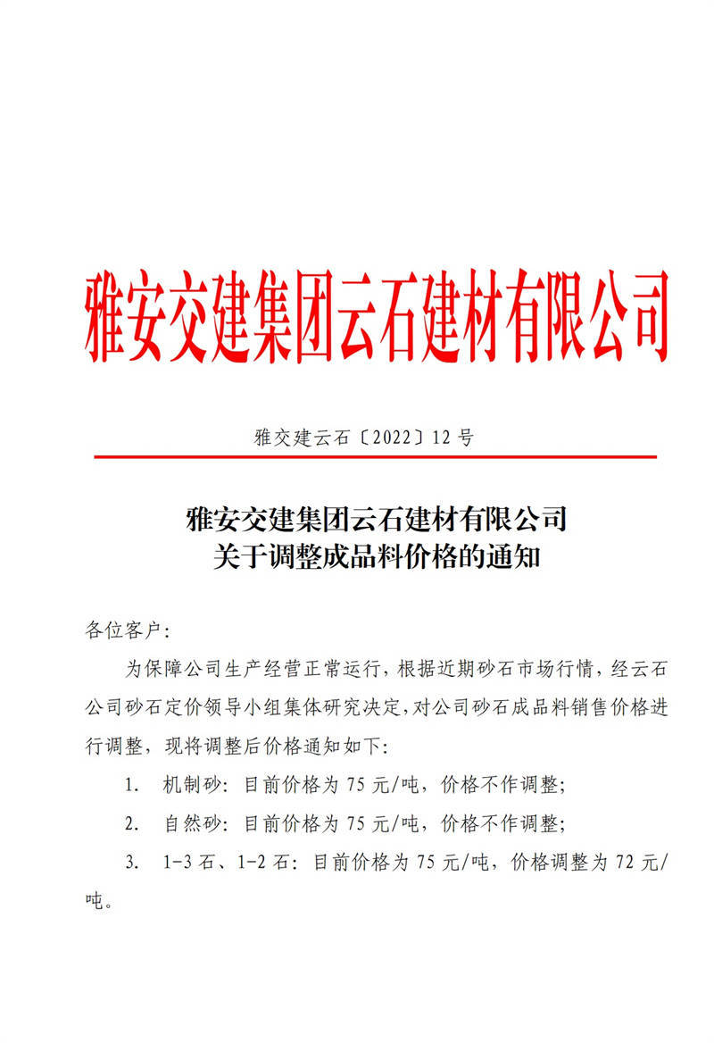 ÑŰ²½»½¨¼¯ˆF(tu¨¢n)ÅdŒšÍ¶ÙYÓÐÏÞ¹«Ë¾ êP(gu¨¡n)ÓÚÕ{(di¨¤o)Õûɰʯ³ÉÆ·ÁÏäNÊÛƒr¸ñµÄ֪ͨ£¨2022-2-23£©