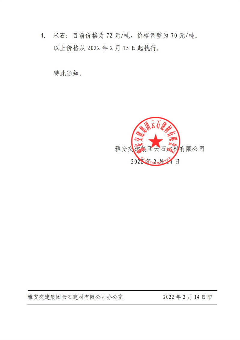 ÑŰ²½»½¨¼¯ˆF(tu¨¢n)ÔÆÊ¯½¨²ÄÓÐÏÞ¹«Ë¾êP(gu¨¡n)ÓÚÕ{(di¨¤o)Õû³ÉÆ·Áσr¸ñµÄ֪ͨ£¨2022-2-14£©