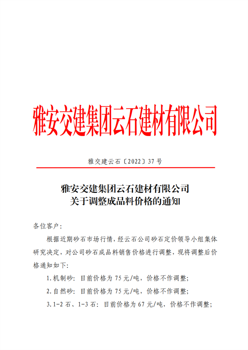 ÑŰ²½»½¨¼¯ˆFÅdŒš¹«Ë¾êP(gu¨¡n)ÓÚÕ{(di¨¤o)Õûɰʯ³ÉÆ·ÁÏäNÊÛƒr¸ñµÄ֪ͨ-2022-5-19