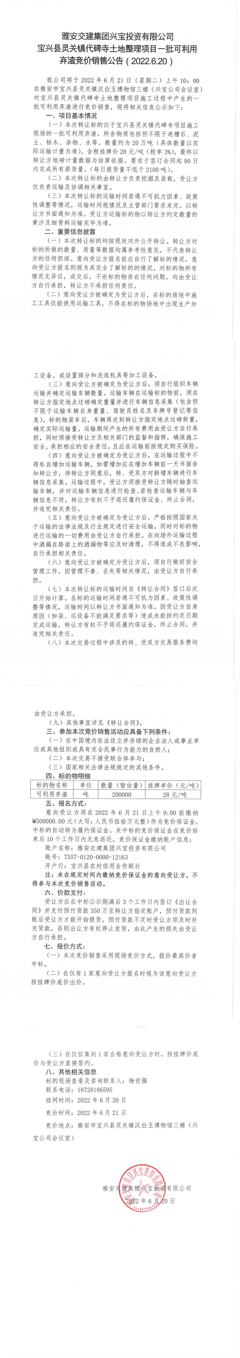 ÑŰ²½»½¨¼¯ˆF(tu¨¢n)ÅdŒšÍ¶ÙYÓÐÏÞ¹«Ë¾ŒšÅd¿hì`êP(gu¨¡n)æ‚(zh¨¨n)´ú±®ËÂÍÁµØÕûÀíí—(xi¨¤ng)Ä¿-Åú¿ÉÀûÓà —‰Ôü¸‚ƒr(ji¨¤)äNÊÛ¹«¸æ( 2022.6.20 )