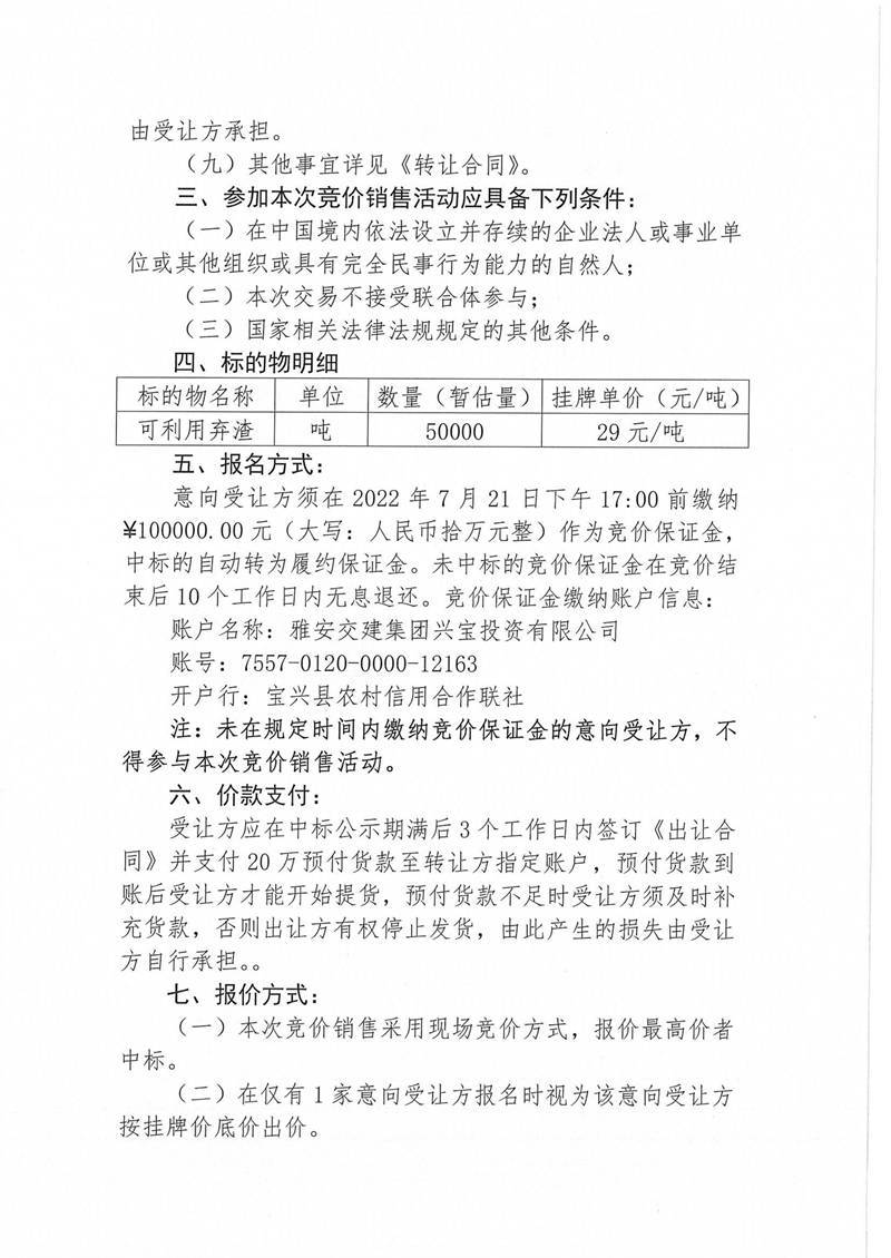 寶興縣靈關(guān)鎮(zhèn)代碑寺土地整理項(xiàng)目一批可利用棄渣競(jìng)價(jià)銷(xiāo)售公告7.15(5萬(wàn)噸)